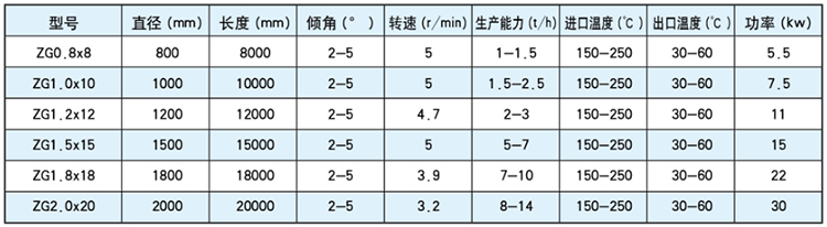有機(jī)肥烘干機(jī)技術(shù)參數(shù):
